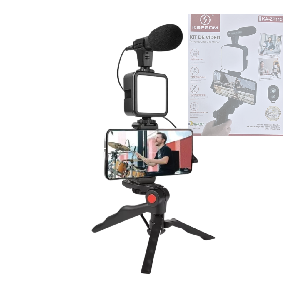 Suporte para Celular com Tripé Luz LED para Streaming Podcast / Self com Microfone