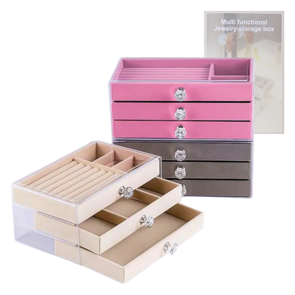 Maleta Porta Joias Expositor de Luxo 3 Gavetas Veludo Acrílico