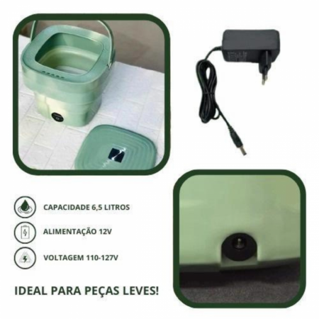 Mini Maquina de Lavar Roupas Dobrável com ALÇA 8 Litros Bivolt