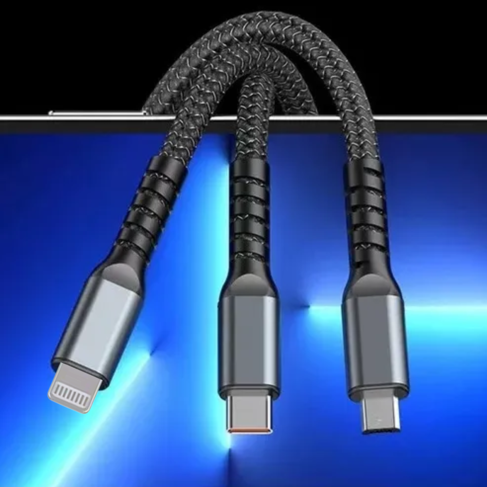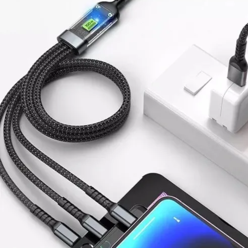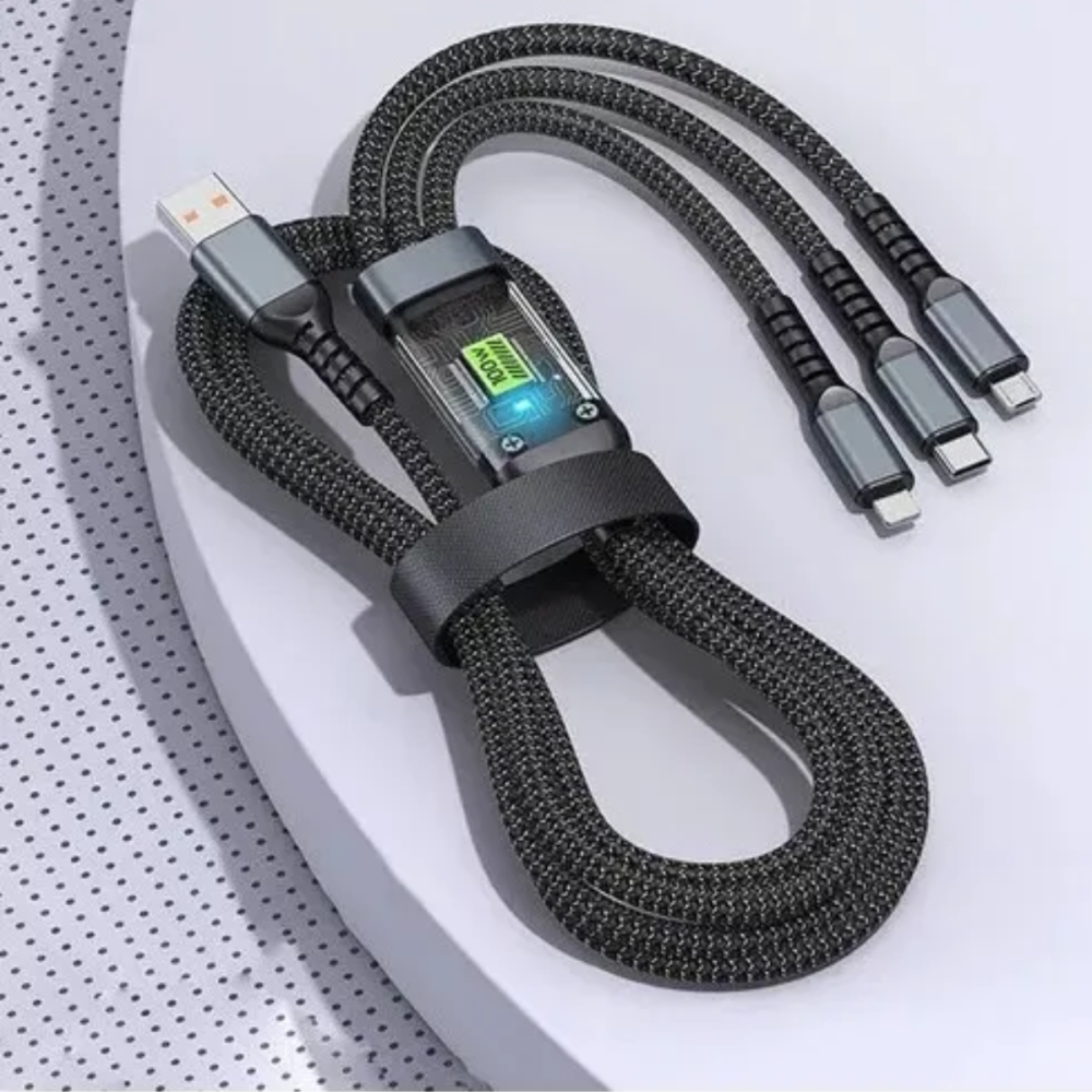 Cabo Carregador 3 in 1 conexão Tipo-C / V8 / Lightning de 1 metro 100W