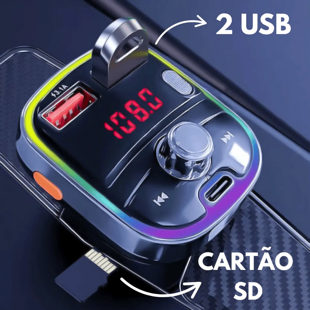 Carregador Transmissor Veicular MP3 Player Bluetooth RGB 18W